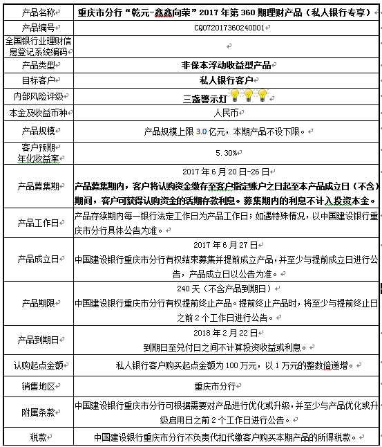 2017年第360期理财产品说明书