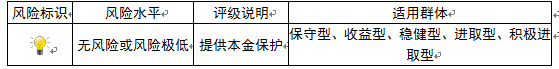本期产品为保本浮动收益型理财产品,本理财产品有投资风险,只保障理财资金本金,不保证理财收益,您应当充分认识投资风险,谨慎投资。本期产品期限为60天(中国建设银行重庆市分行有权对产品进行展期或提前终止)。本期产品内部风险评级级别为一盏警示灯,风险程度属于无风险或风险极低,适用于保守型、收益型、稳健型、进取型及积极进取型投资者。最不利情况下,客户只能收回投资本金,不能获得任何投资收益。