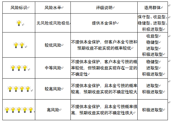 ,风险水平属于中等风险。最不利情况下,您将损失全部收益甚至包括全部本金。本理财产品适用于稳健型、进取型 、积极进取型客户。