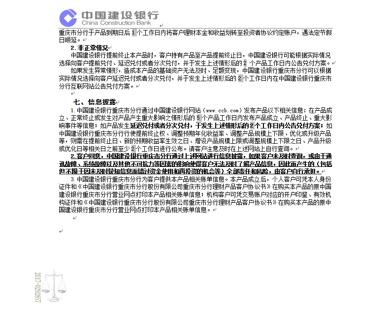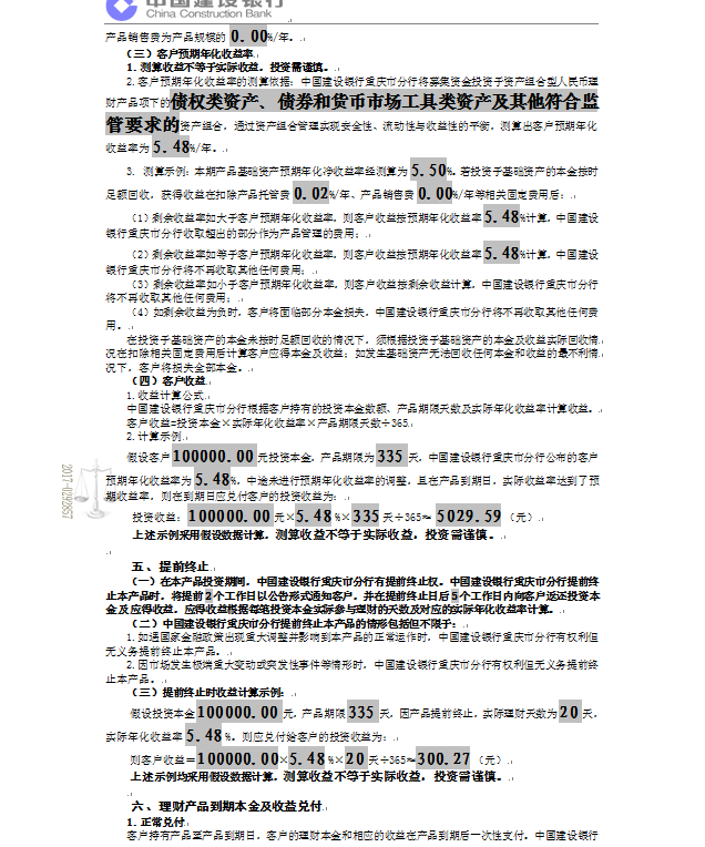 中国建设银行重庆市分行“乾元-鑫鑫向荣” 2017年第410期理财产品说明书和风险揭示书
