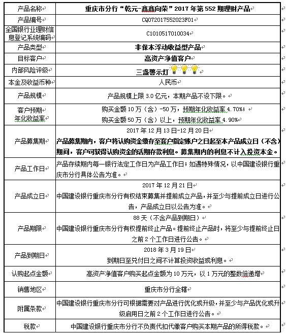 2017年第552期理财产品说明书
