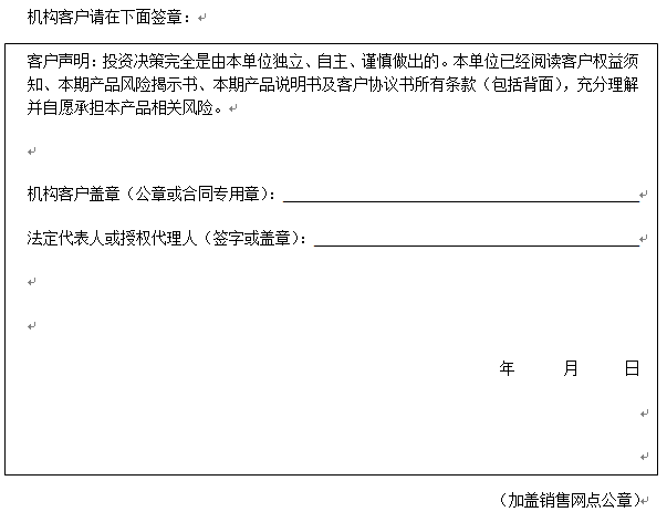在您签署《中国建设银行股份有限公司理财产品客户协议书》前,应当仔细阅读客户权益须知、本风险揭示书及本产品的产品说明书的全部内容,同时向中国建设银行重庆市分行了解本产品的其他相关信息,并自己独立做出是否认(申)购本产品的决定。