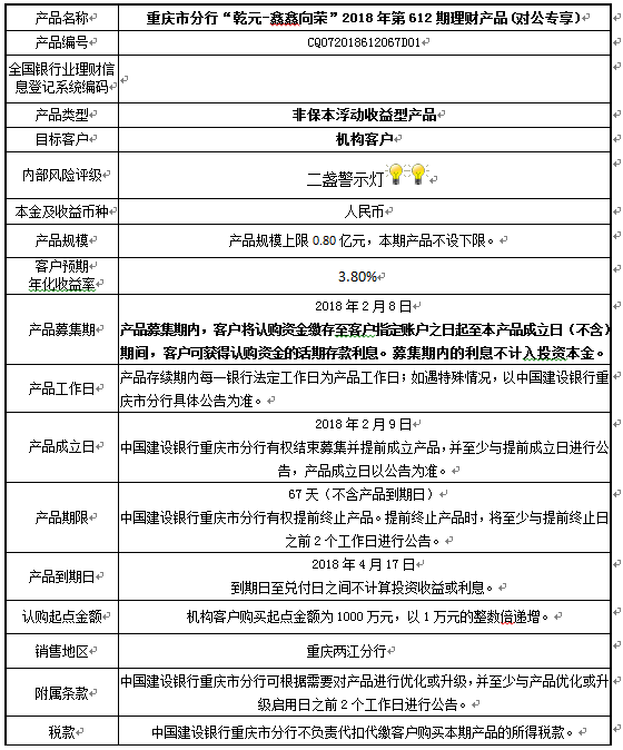 3.中国建设银行重庆市分行可根据市场情况等调整产品规模上、下限,并最迟于调整规模上下限当日进行公告。