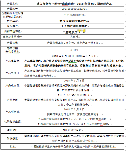 3.中国建设银行重庆市分行可根据市场情况等调整产品规模上、下限,并最迟于调整规模上下限当日进行公告。