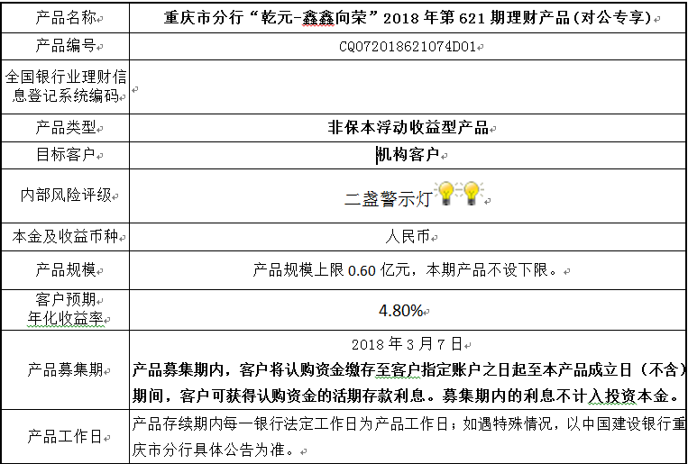 3.中国建设银行重庆市分行可根据市场情况等调整产品规模上、下限,并最迟于调整规模上下限当日进行公告。
