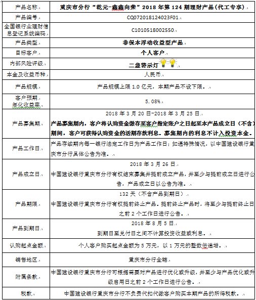 3.中国建设银行重庆市分行可根据市场情况等调整产品规模上、下限,并最迟于调整规模上下限当日进行公告。