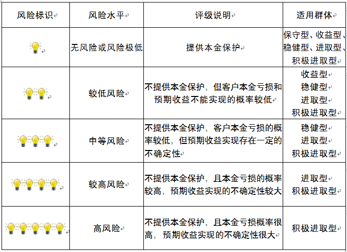 ,风险水平属于较低风险。最不利情况下,您将损失全部收益甚至包括全部本金。本理财产品适用于收益型、稳健型、进取型 、积极进取型客户。