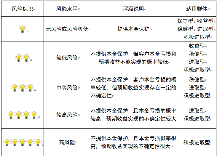 ,风险水平属于较低风险。最不利情况下,您将损失全部收益甚至包括全部本金。本理财产品适用于收益型、稳健型、进取型 、积极进取型客户。