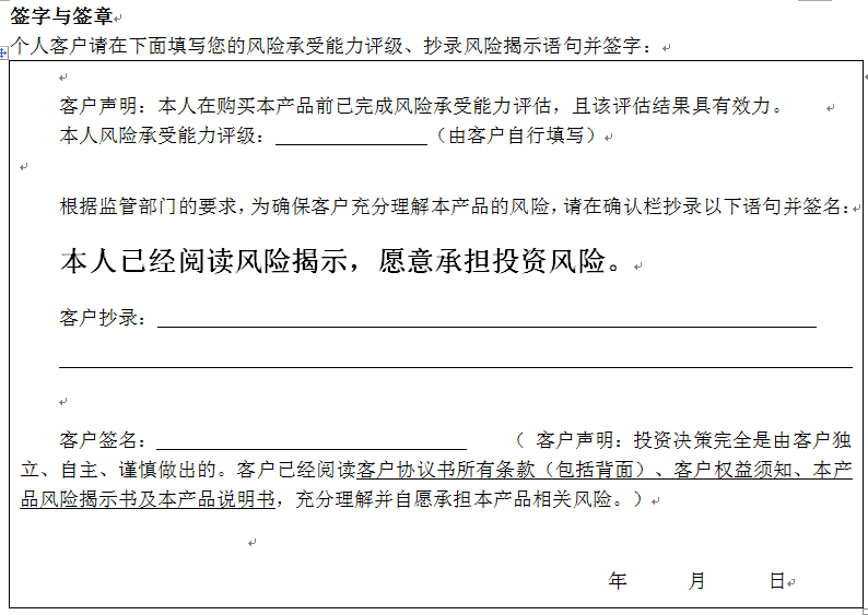 您签署本风险揭示书、客户协议书,并将资金委托给中国建设银行重庆市分行运作是您真实的意思表示。本风险揭示书及相应的客户协议书、产品说明书、客户权益须知将共同构成贵我双方理财合同的有效组成部分。