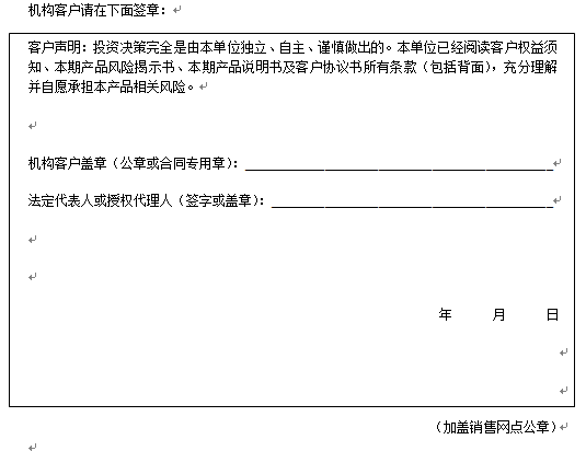 在您签署《中国建设银行股份有限公司理财产品客户协议书》前,应当仔细阅读客户权益须知、本风险揭示书及本产品的产品说明书的全部内容,同时向中国建设银行重庆市分行了解本产品的其他相关信息,并自己独立做出是否认(申)购本产品的决定。