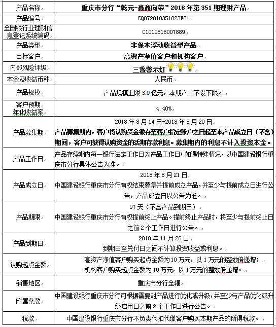 2018年第351期理财产品说明书