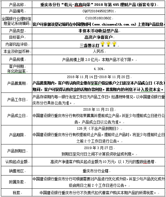 3.中国建设银行重庆市分行可根据市场情况等调整产品规模上、下限,并最迟于调整规模上下限当日进行公告。