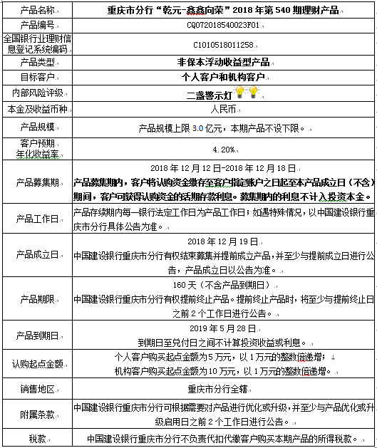 3.中国建设银行重庆市分行可根据市场情况等调整产品规模上、下限,并最迟于调整规模上下限当日进行公告。