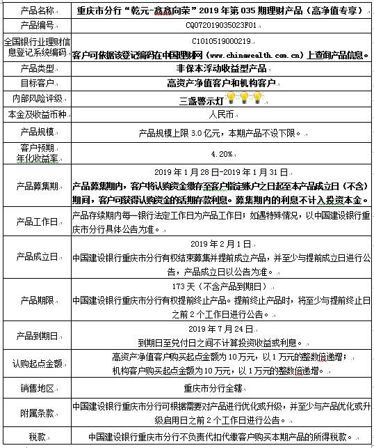 3.中国建设银行重庆市分行可根据市场情况等调整产品规模上、下限,并最迟于调整规模上下限当日进行公告。