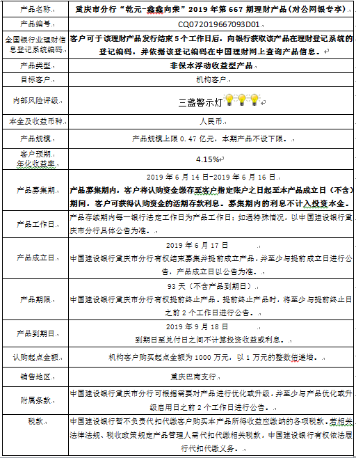 2019年第667期理财产品说明书