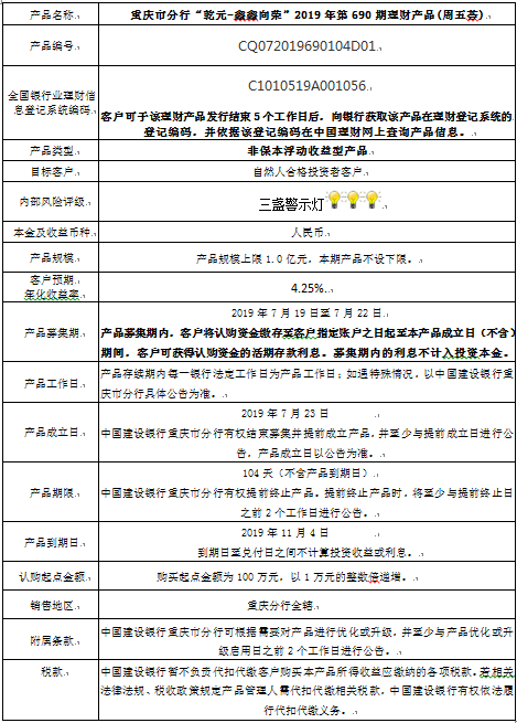 中国建设银行重庆市分行“乾元-鑫鑫向荣” 2019年第690期理财产品风险揭示书和产品说明书
