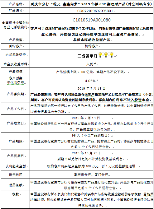 2019年第692期理财产品说明书