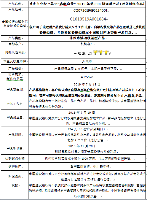 3.中国建设银行重庆市分行可根据市场情况等调整产品规模上、下限,并最迟于调整规模上下限当日进行公告。