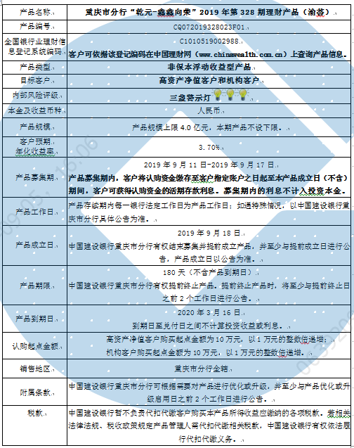 3.中国建设银行重庆市分行可根据市场情况等调整产品规模上、下限,并最迟于调整规模上下限当日进行公告。