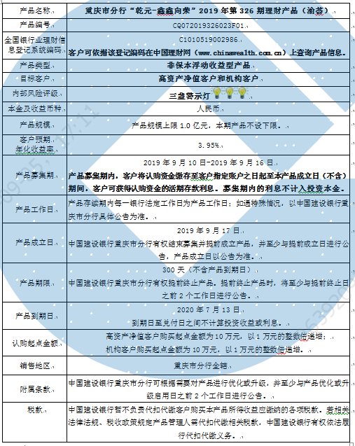 2019年第326期理财产品说明书