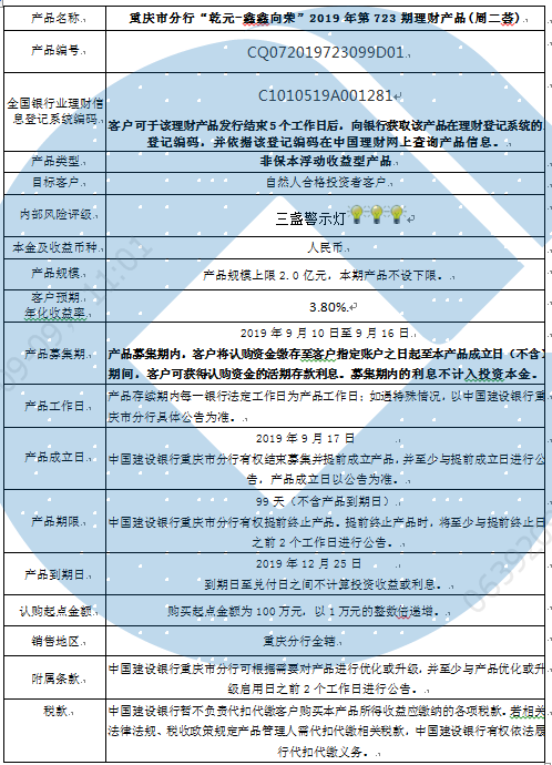 3.中国建设银行重庆市分行可根据市场情况等调整产品规模上、下限,并最迟于调整规模上下限当日进行公告。