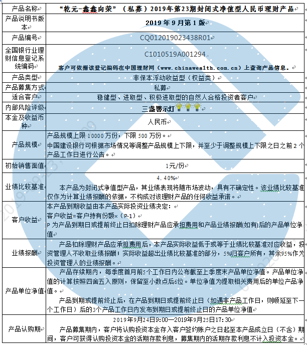 中国建设银行重庆市分行“乾元-鑫鑫向荣”(私募)2019年
