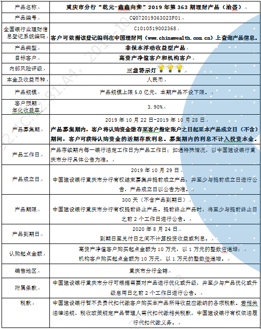 2019年第363期理财产品说明书