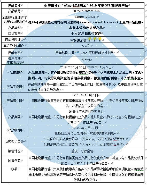 3.中国建设银行重庆市分行可根据市场情况等调整产品规模上、下限,并最迟于调整规模上下限当日进行公告。