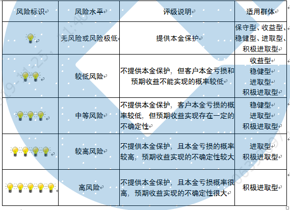 本产品为非保本浮动收益型理财产品,不保证本金和收益,请您充分认识投资风险,谨慎投资。本期产品期限为96天(中国建设银行有权对产品进行展期或提前终止),存续期内,产品不接受申购或赎回申请。本期产品内部风险评级级别为盏警示灯 ,风险水平属于中等风险。最不利情况下,您将损失全部收益甚至包括全部本金。本理财产品适用于稳健型、进取型 积极进取型客户。