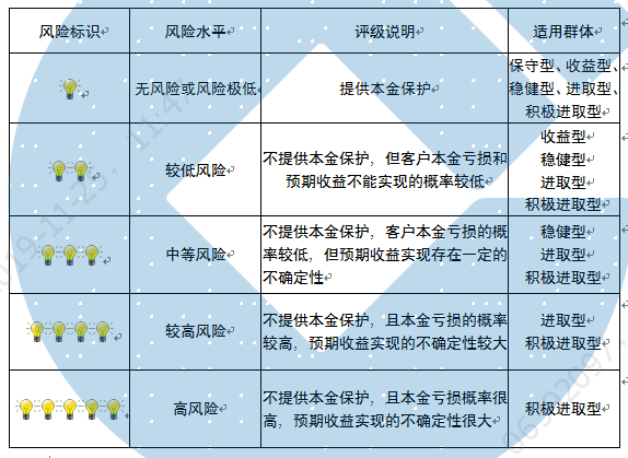本产品为非保本浮动收益型理财产品,不保证本金和收益,请您充分认识投资风险,谨慎投资。本期产品期限为365天(中国建设银行有权对产品进行展期或提前终止),存续期内,产品不接受申购或赎回申请。本期产品内部风险评级级别为盏警示灯 ,风险水平属于中等风险。最不利情况下,您将损失全部收益甚至包括全部本金。本理财产品适用于稳健型、进取型 积极进取型客户。