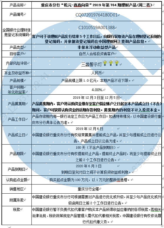 3.中国建设银行重庆市分行可根据市场情况等调整产品规模上、下限,并最迟于调整规模上下限当日进行公告。