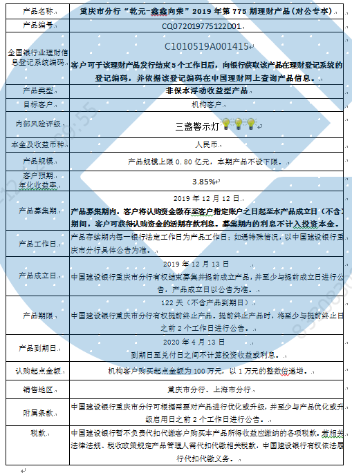 3.中国建设银行重庆市分行可根据市场情况等调整产品规模上、下限,并最迟于调整规模上下限当日进行公告。