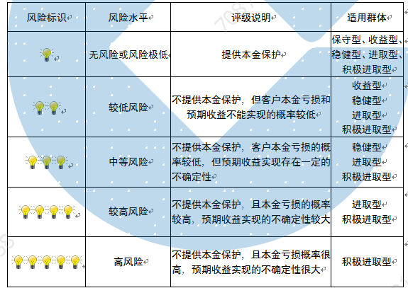 本产品为非保本浮动收益型理财产品,不保证本金和收益,请您充分认识投资风险,谨慎投资。本期产品期限102天(中国建设银行有权对产品进行展期或提前终止),存续期内,产品不接受申购或赎回申请。本期产品内部风险评级级别为盏警示灯,风险水平属于中等风险。最不利情况下,您将损失全部收益甚至包括全部本金。本理财产品适用于稳健型进取型 积极进取型客户。