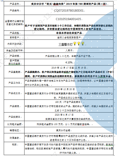 2019年第780期理财产品说明书