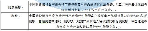 1.如遇国家金融政策出现重大调整并影响到本产品的正常运作时,中国建设银行重庆市分行有权利但无义务提前终止本产品。