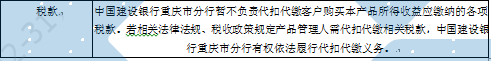 在本产品运作过程中涉及的各纳税主体,其纳税义务按国家税务法律、法规执行。本产品运营过程中发生的增值税行为,由中国建设银行重庆市分行申报和缴纳增值税及附加税费,税款由本产品资产总值中扣除。