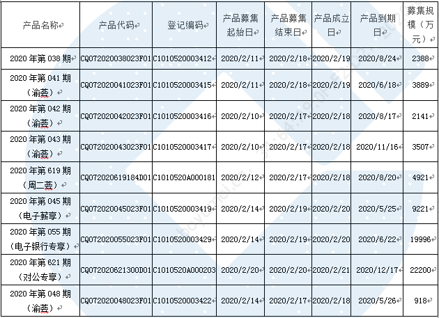 根据与投资者的约定,现将2020年2月17日-2020年2月21日期间理财产品成立情况信息进行披露: