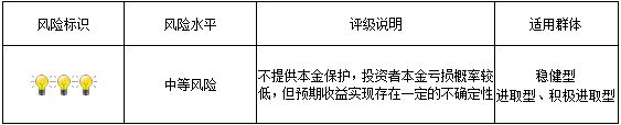 4. 市场风险:本期产品的基础资产价值受未来市场的不确定影响可能出现波动,从而导致客户收益波动、收益为零甚至本金损失的情况。