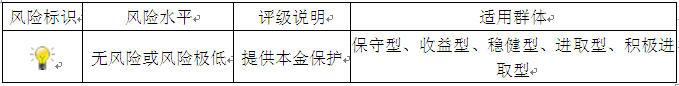 本期产品为保本浮动收益型理财产品,本理财产品有投资风险,只保障理财资金本金,不保证理财收益,您应当充分认识投资风险,谨慎投资。本期产品期限为181天(中国建设银行有权对产品进行展期或提前终止)。本期产品内部风险评级级别为一盏警示灯,风险程度属于无风险或风险极低,适用于保守型、收益型、稳健型、进取型及积极进取型投资者。最不利情况下,客户只能收回投资本金,不能获得任何投资收益。
