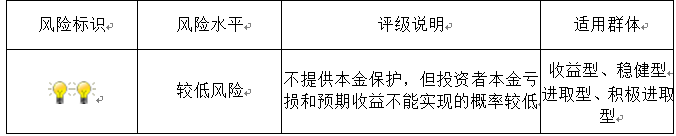 本期产品为非保本浮动收益型理财产品,不保证本金和收益,请您充分认识投资风险,谨慎投资。本期产品期限162天(中国建设银行有权对本期产品进行展期和提前终止),存续期内产品不接受申购或赎回申请。本期产品内部风险评级级别为2盏警示灯 ,风险程度属于较低风险。最不利情况下,资产组合无法回收任何本金和净收益,客户将损失全部本金。产品适合于收益型、稳健型、进取型、积极进取型客户。
